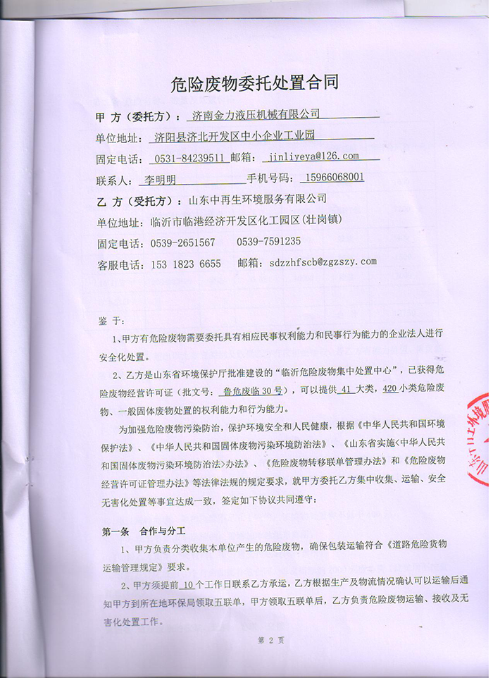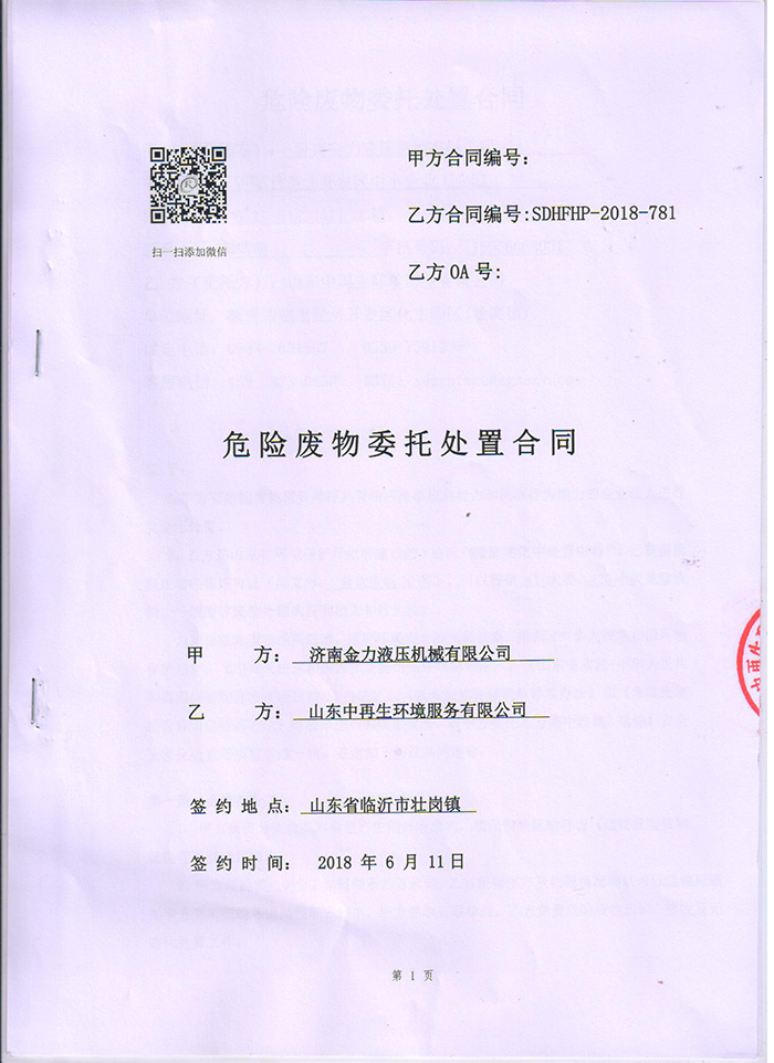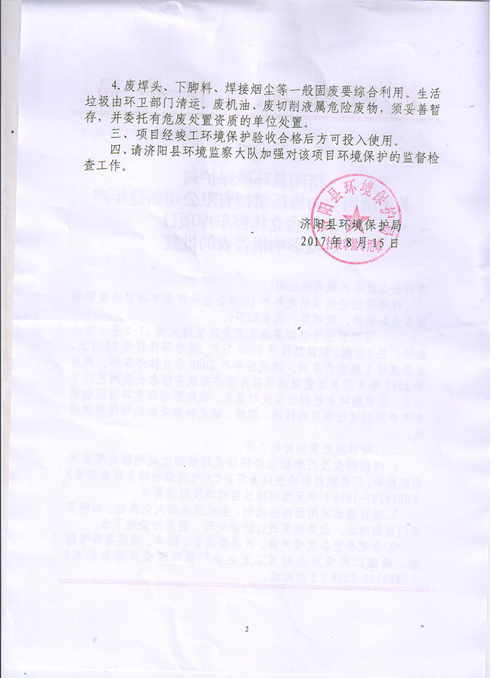 根據(jù)《建設(shè)項目竣工環(huán)境保護(hù)驗收暫行辦法》(國環(huán)規(guī)環(huán)評[2017]4號,20171120日),特委托貴公司開展對濟(jì)南金力液壓機(jī)械有限公司新建年產(chǎn)2000 臺立體停車庫項目的驗收監(jiān)測工作。
