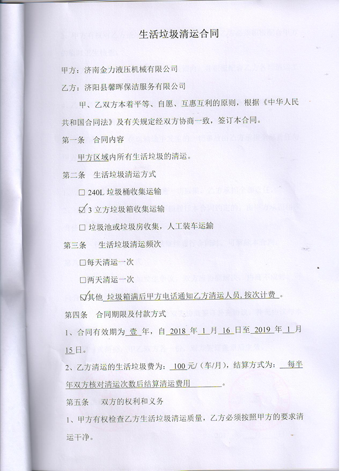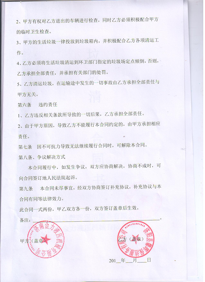 附件9 垃圾清運(yùn)協(xié)議